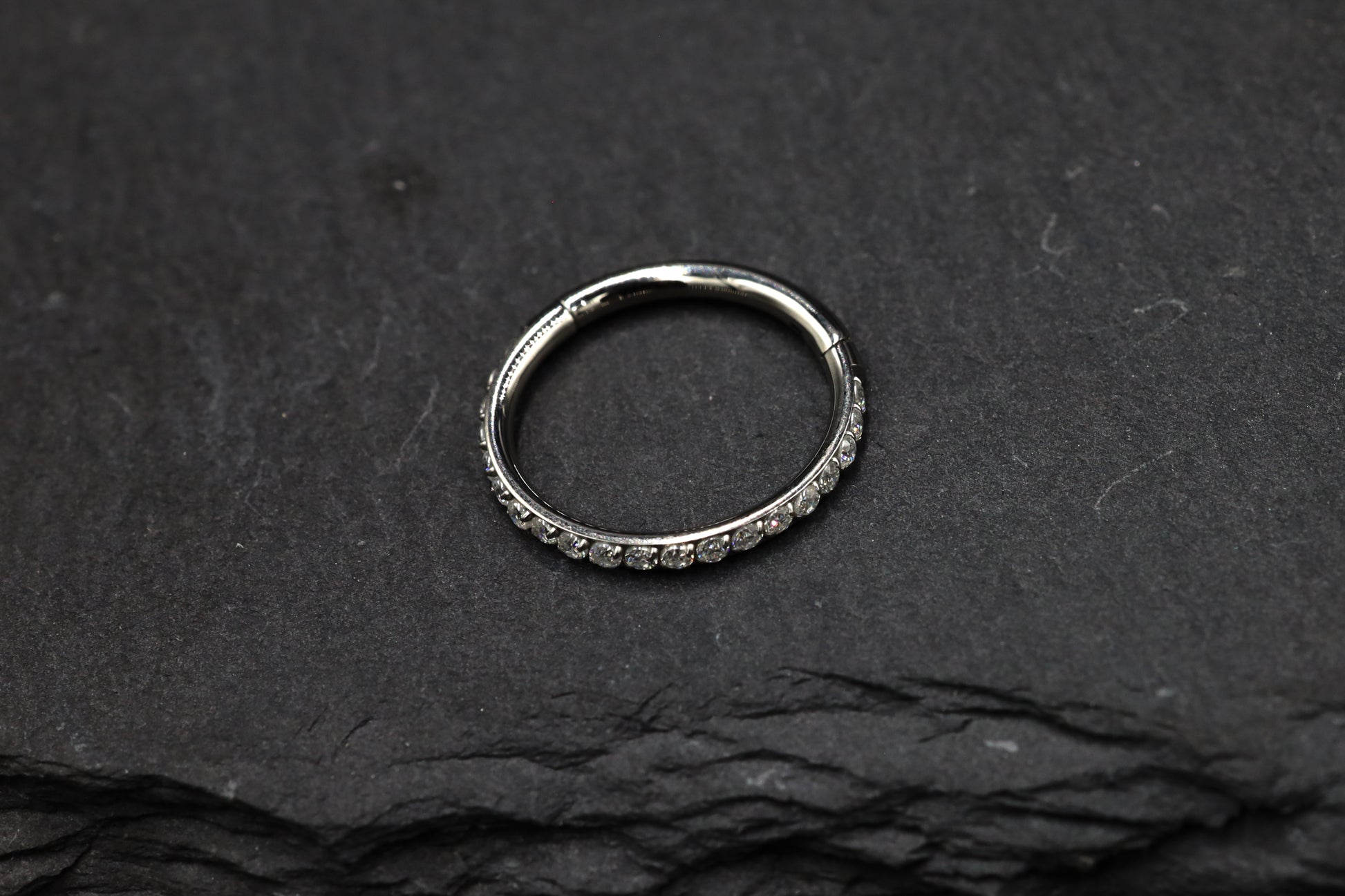 Available in 8mm (Mini) and 10mm (Medium), these 16-gauge titanium hoops are set with micro-pavé moissanite for an subtle sparkle. Each stone catches the light with sharp flashes of fire, giving these hoops a luxe twist without losing their toughness.